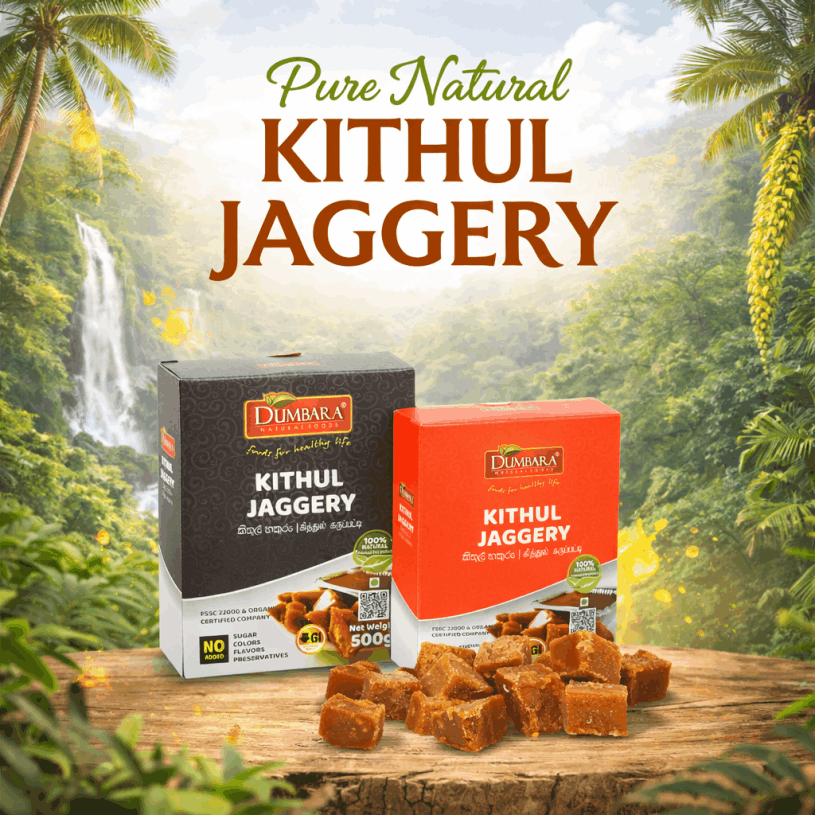 Dumbara Kithul Jaggery is made from 100% pure Kithul sap, traditionally crafted to deliver rich, natural sweetness with no added sugar, preservatives, or artificial ingredients – an authentic and wholesome alternative to refined sweeteners.
